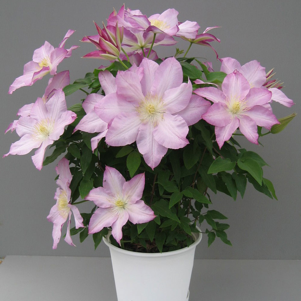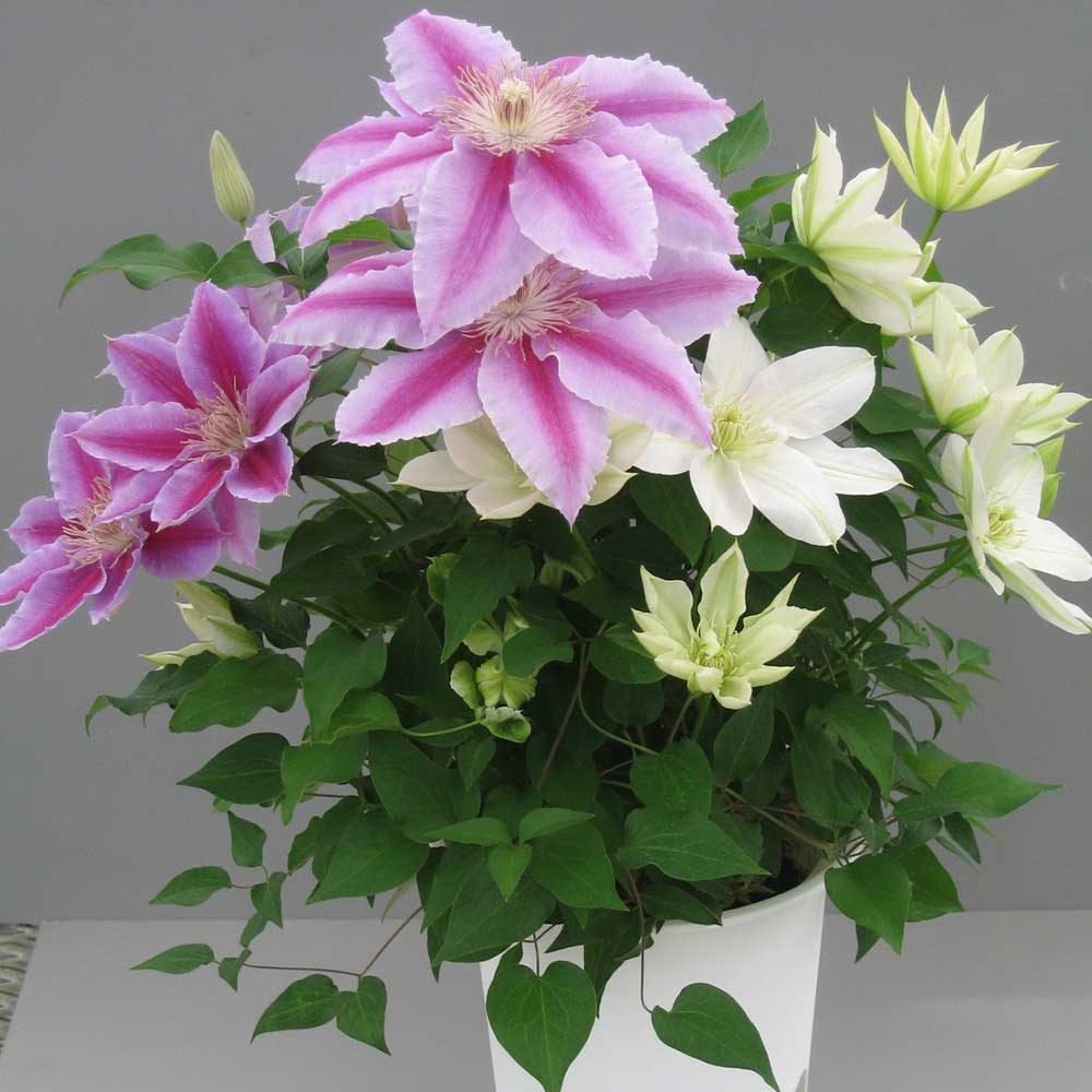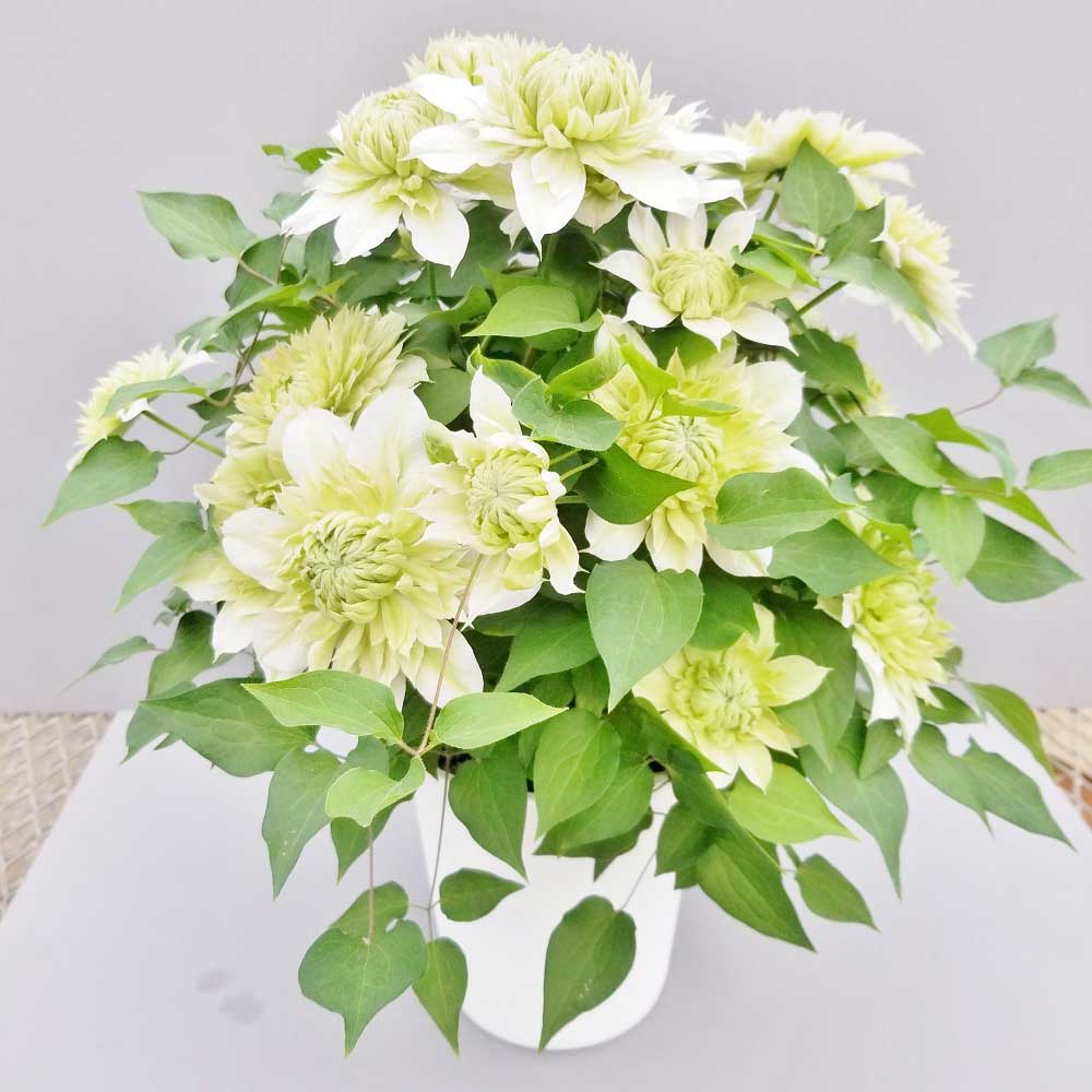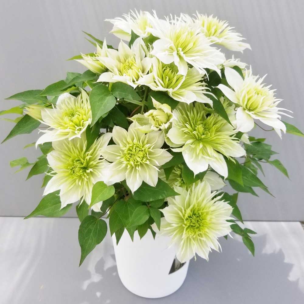 切り戻し後は地植えにするか、2回りほど大きな鉢に植え替えし、肥料をあげて明るい場所で管理するようにしましょう。新しいツルが伸びてその先端に花がつき、一番花ほど豪華ではありませんが二番花を楽しんでいただけます。